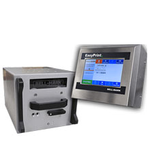 Bell-Mark EasyPrint III thermal transfer printer with 53 mm (2.10") or 128 mm (5.04") near-edge printhead delivers high-speed 300 dpi coding up to 800 mm/sec for flexible packaging applications.