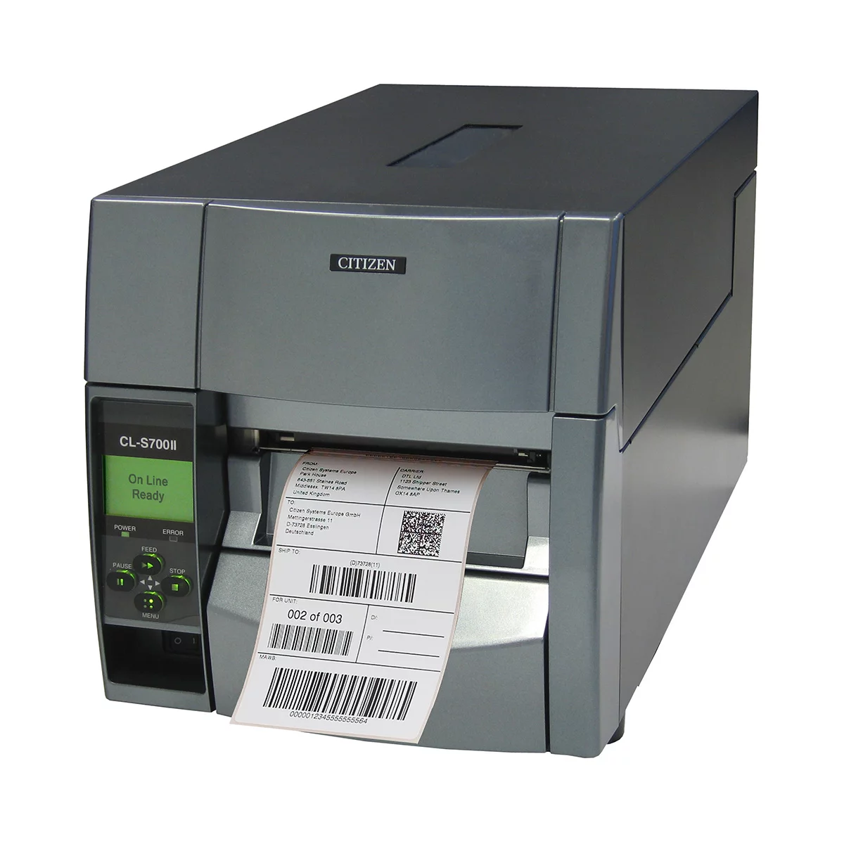 The Citizen CL-S703II accepts ribbon widths from 3.4" (86.5mm). Standard lengths include 450 meters. Choose a ribbon at least 0.5" wider than your labels for optimal coverage.